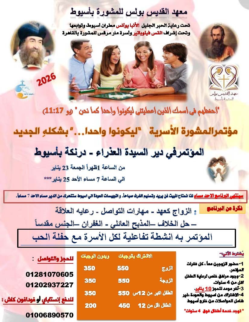 🚨📢 لكل زوج و زوجة 👈🏿 يبحثوا عن التغيير 👈🏿 يبحثوا عن التواصل بفعالية 👈🏿 محتاجين يعرفوا يتعاملوا بشكل مختلف مع الاهل 👈🏿 محتاجين يتغيروا و يتعلموا الغفران 👈🏿 يبحثوا عن تسديد الاحتياجات موعدنا 👇🏿 الساعة ١ م 🕐 الجمعة ٢٣ يناير🗓️ حتي الساعه ٧م🕖 الأحد ٢٥ يناير 🗓️ مع مؤتمر الأسرة 💥 ( ليكونوا […]